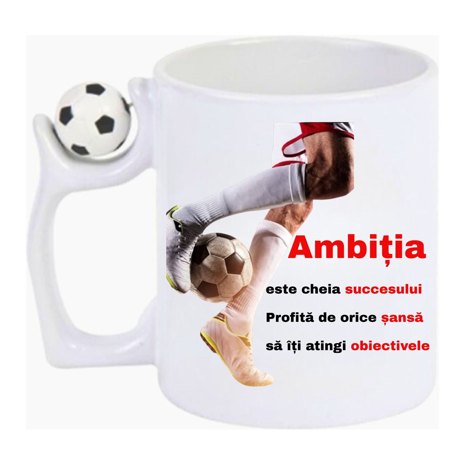 În funcție de preferințe, se pot selecta și modele fără minge de fotbal aplicate pe mâner, cu interior și mâner în diverse culori, precum și căni termosensibile.
