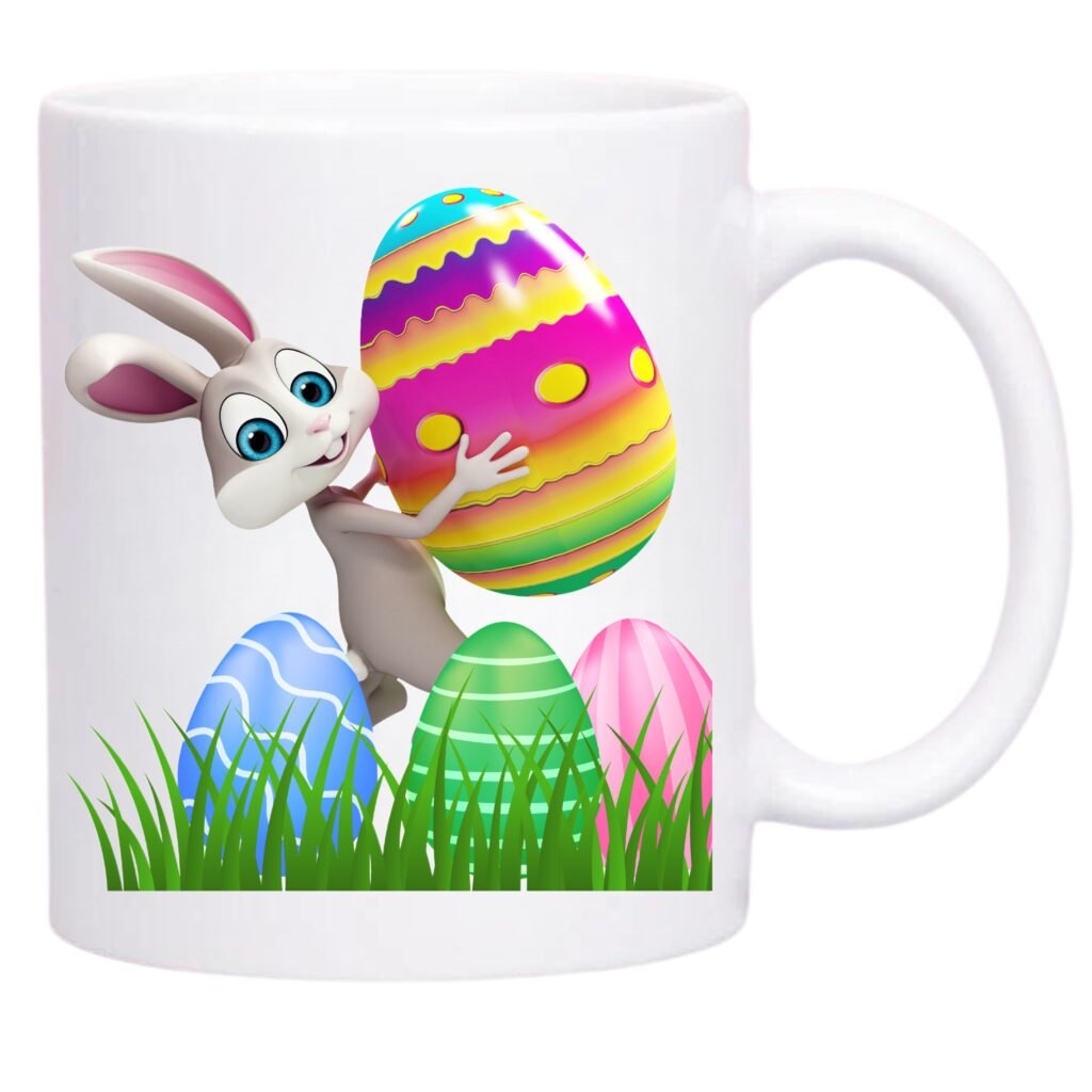 • Cană ceramică cu imprimeu ouă și Iepurașul de Paște