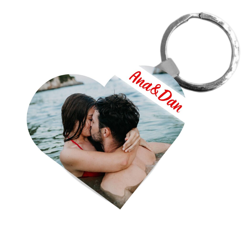 • Breloc personalizat cu poză și mesaj, în formă de inimă, mdf