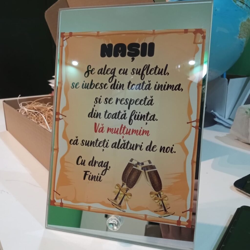 59.00leiPlachetă cadou, din sticlă, personalizată cu mesaj pentru nașii de cununie
