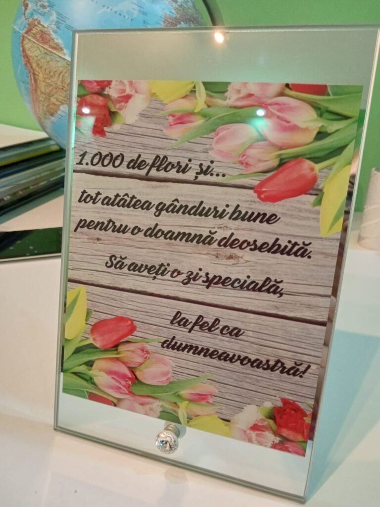 Plachetă din sticlă personalizată cu fotografie și mesaj