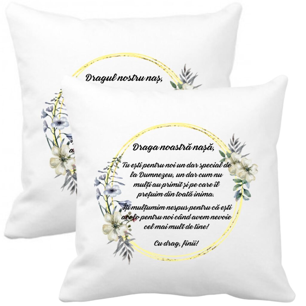 Prețul inițial a fost: 115.00lei.94.00leiPrețul curent este: 94.00lei.ReducereSet cadou 2 perne personalizate pentru nași